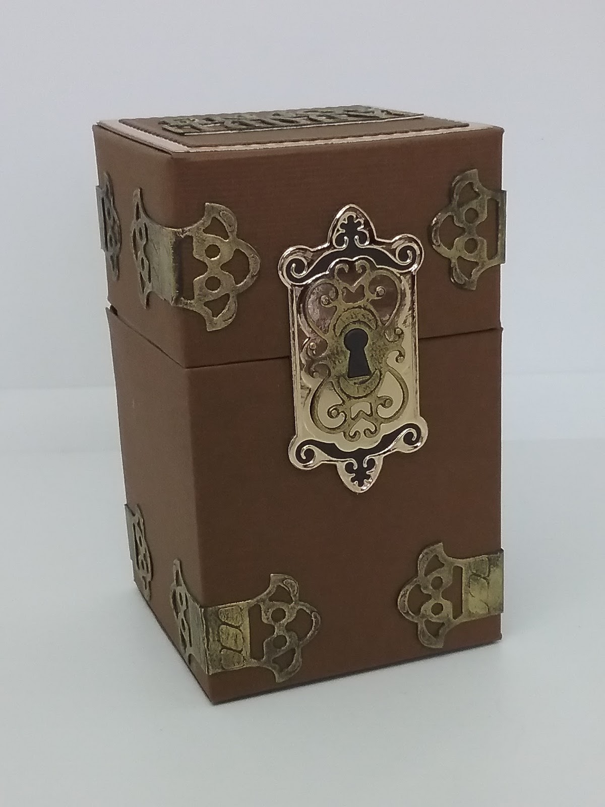 Today I am sharing a box I created using the Hinges and one of the locks which were cut from mirri card and then distressed with some gold bronze nuvo mousse to add that slight rustic look.